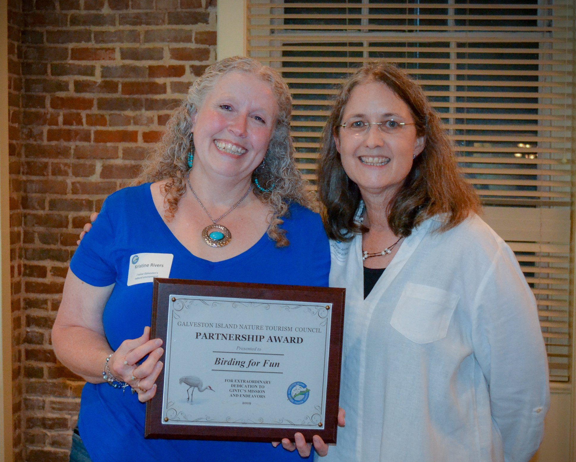 Previous Image Next Image Kristine receiving her Galveston Island Nature Tourism Council Partnership Award.